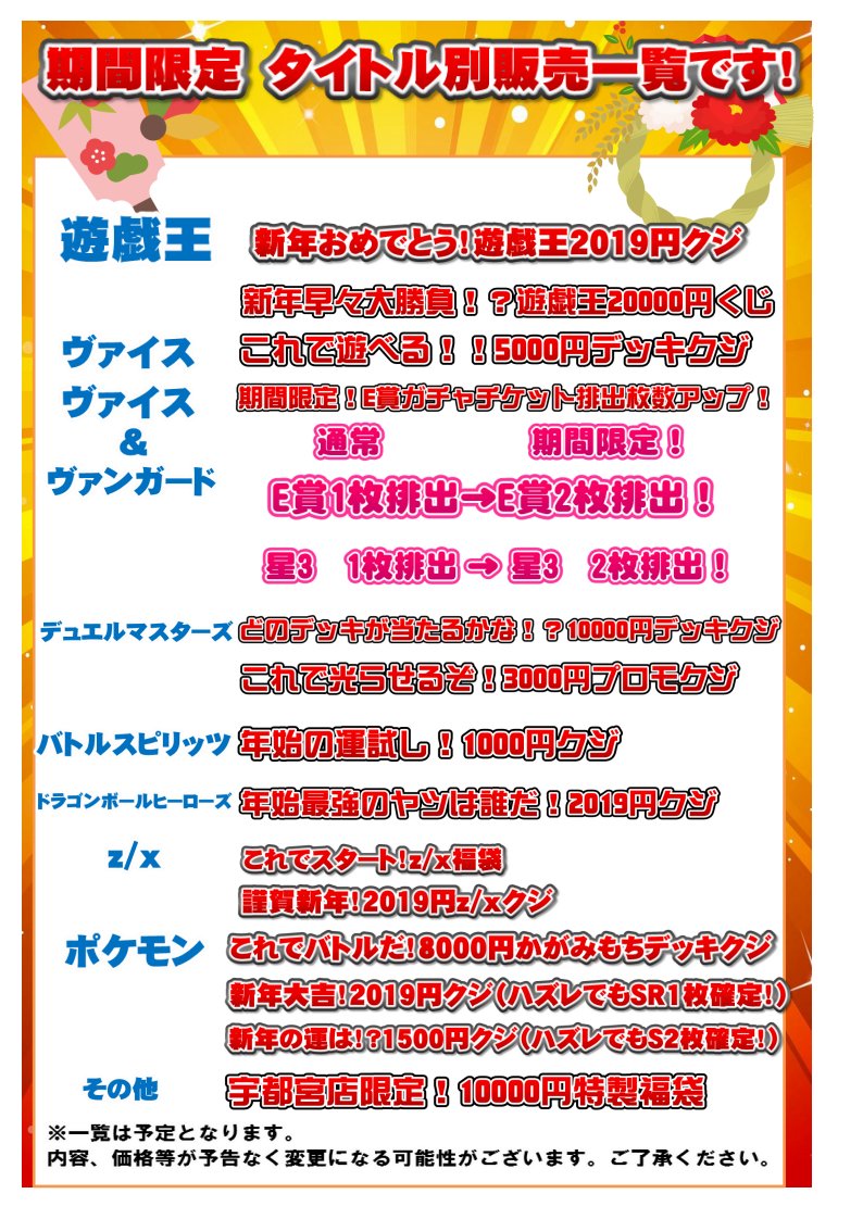 元旦には是非カードラボ宇都宮店までお越しくださいませ!#ws2tcg #ヴァイスシュヴァルツ pic.twitter.com/gZJyDA7z18— カードラボ宇都宮店 (@utsunomiya_labo) December 28, 2018