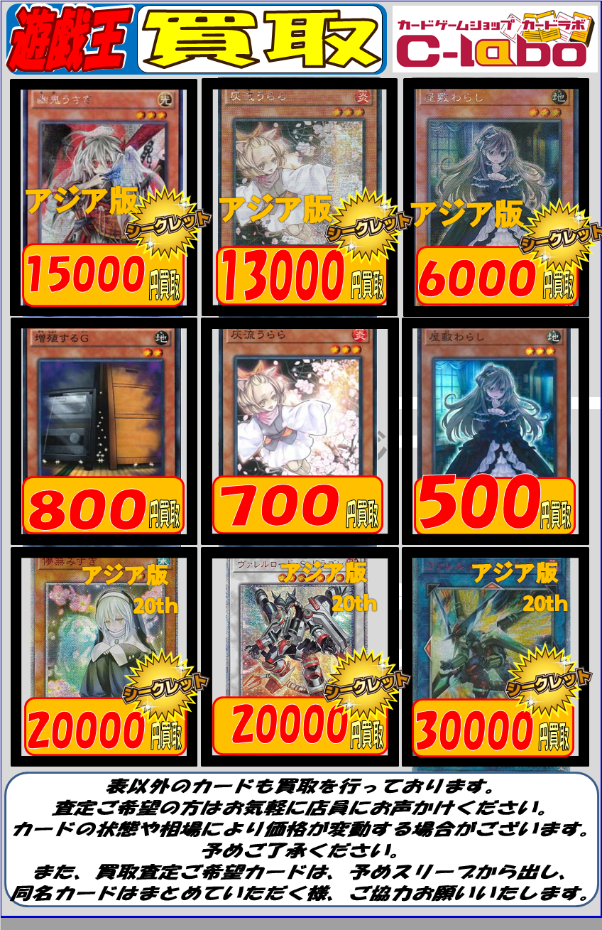 やっと・・・・・遊戯王の買取表完成です・・・!!