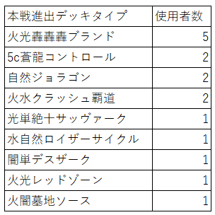 なお、今回は母数が1のデッキに関しては省略させていただいています。