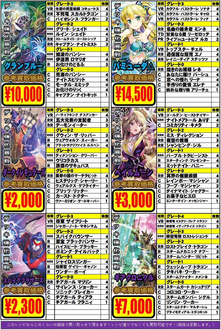 【ヴァンガード】VG買取表更新!!【スタンダード】