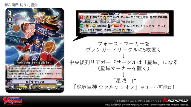 そんな新田新右衛門が使用するクランは「ジェネシス」。切り札となるカードも一部公開されました。新アニメと連動したトライアルデッキ&ブースターパックも続々リリース!アニメの放送は8月24日から!
