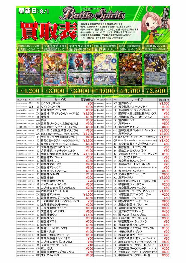 現在バトルスピリッツの買取価格はこの様になってます(._.)↓