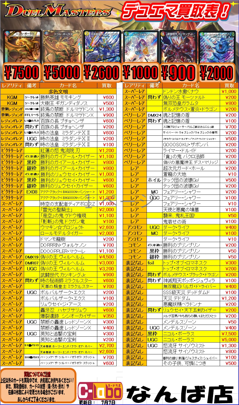 【デュエル・マスターズ】デュエマフェス | なんば店 | 16名 | スイスドロー | 300円 | 30分前から受付です |