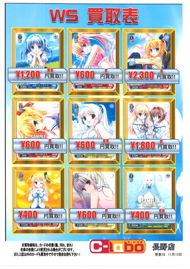 今回は今特に欲しいカードをピックアップして買取表にしました!!