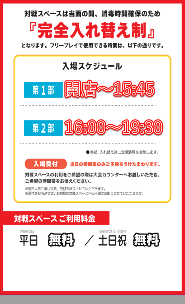 土・日・祝日も利用料金が無料になりましたのでもっともっとカードゲームで遊んじゃいましょう♪