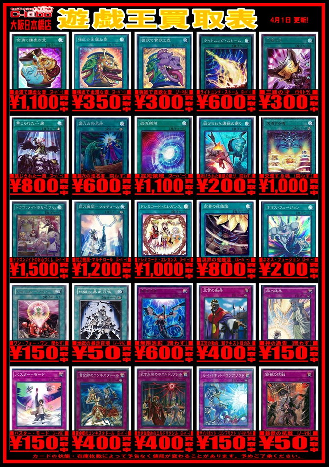 遊戯王買取表更新しております!