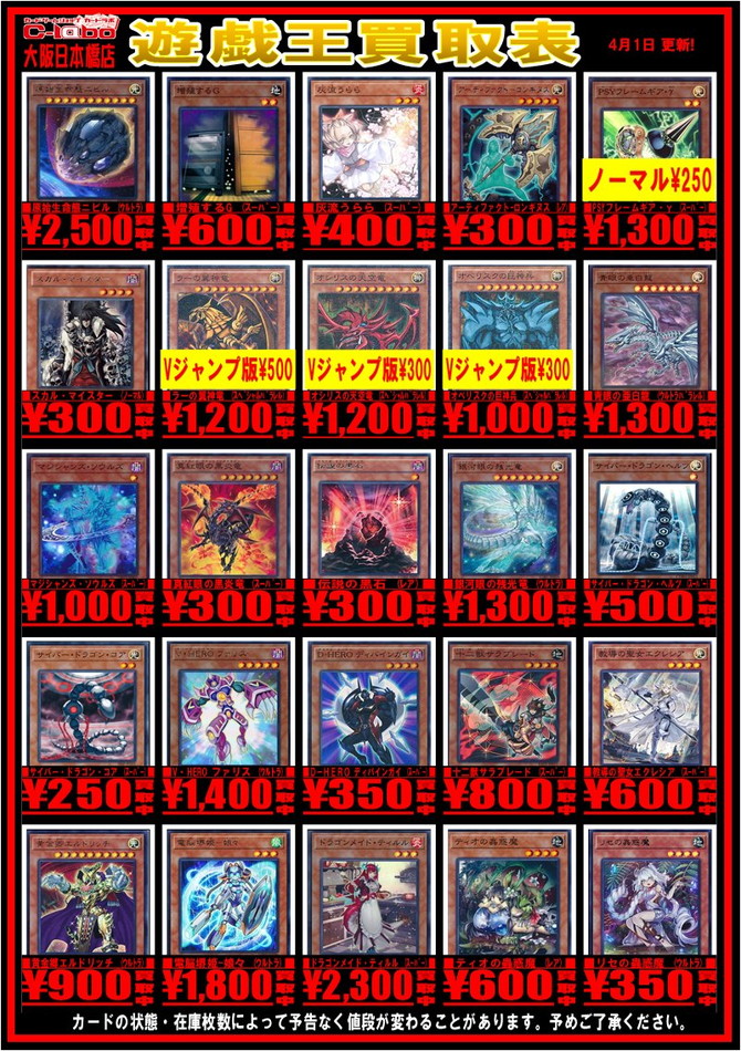 カードの状態や在庫状況などによりましては、金額が変動する場合がございます。