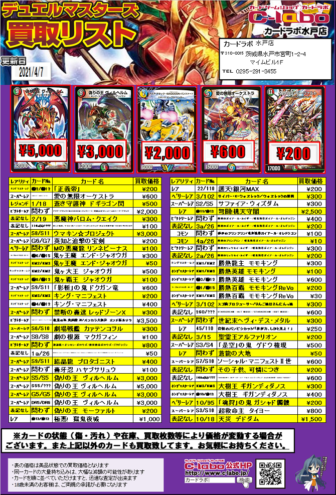 【デュエル・マスターズ】デュエマフェス | 水戸店 | 16名 | スイスドロー | 300円 | 開催時刻までに大会カウンターにてお手続きください。※時刻を過ぎた場合、エントリーできません。 | |