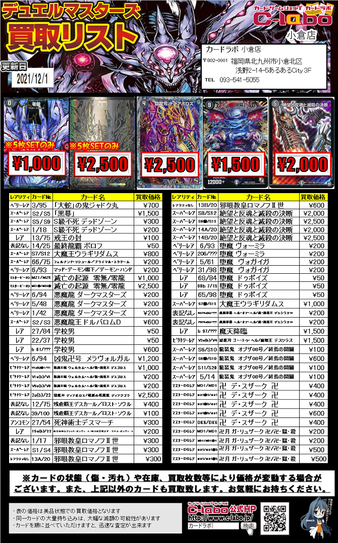 【デュエル・マスターズ】12月1日更新!!デュエル・マスターズ最新買取情報!!!