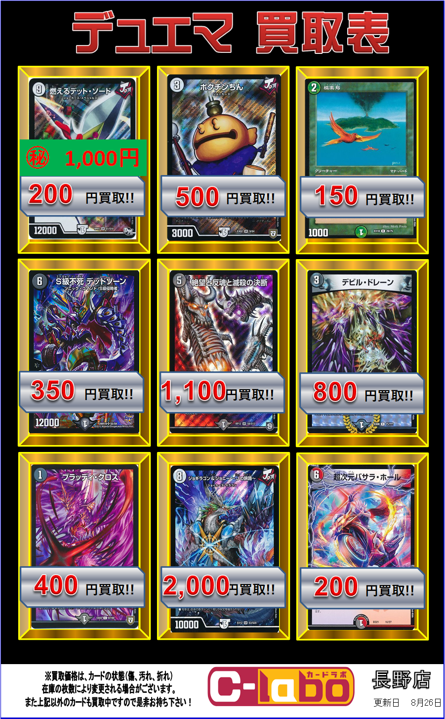 【デュエマ買取情報】ゼーロベンやジョラゴン、その他デッキパーツ買取募集中!!【勝太&カツキング 3,000円買取!!】
