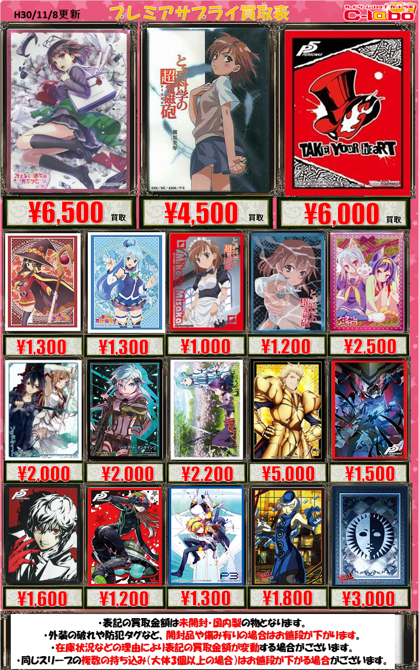 女性モノのキャラスリーブは最低「200円」買取保証!