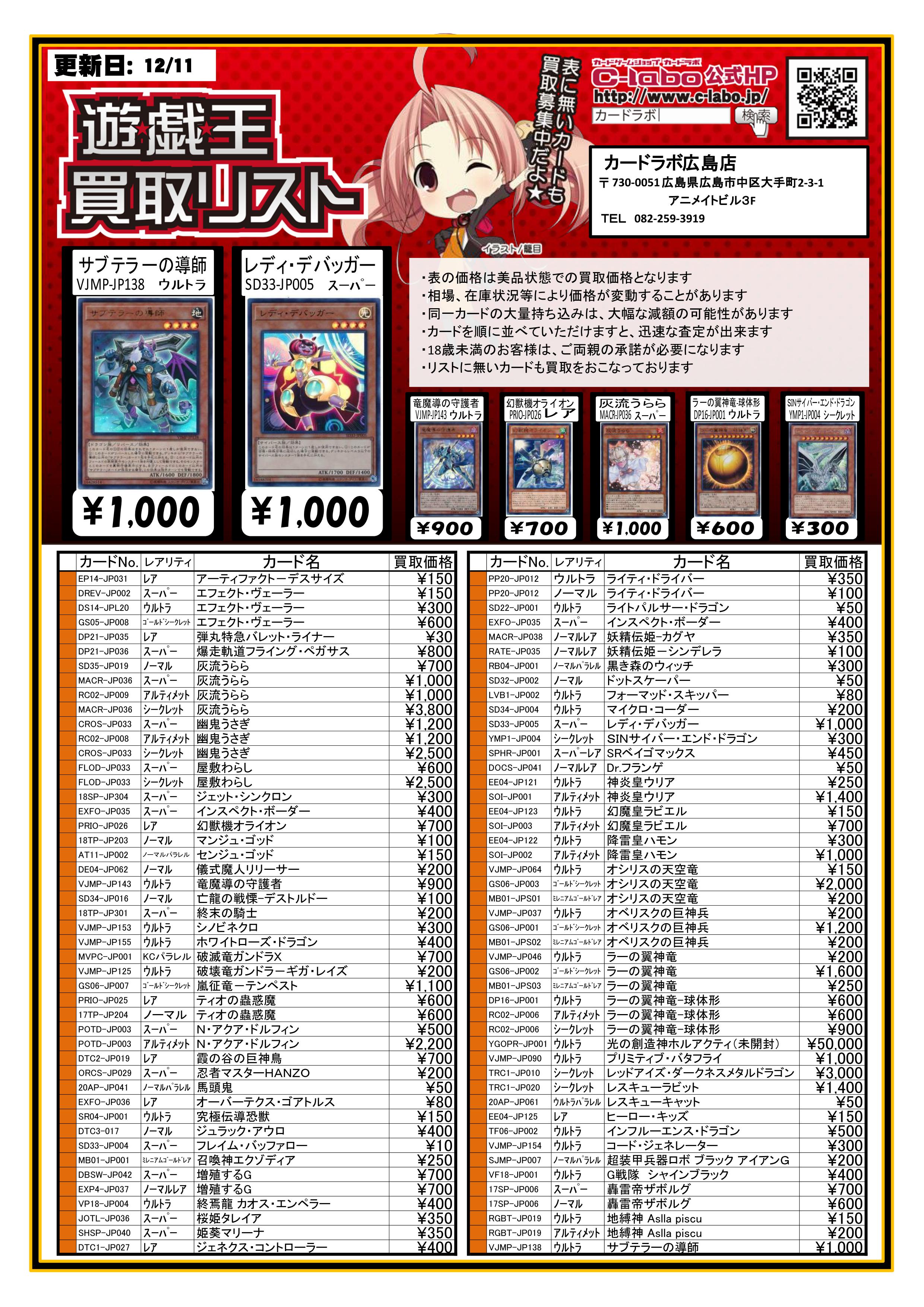 在庫状況やカードの状態等でお値段が変動する場合がございます。予めご了承下さい!
