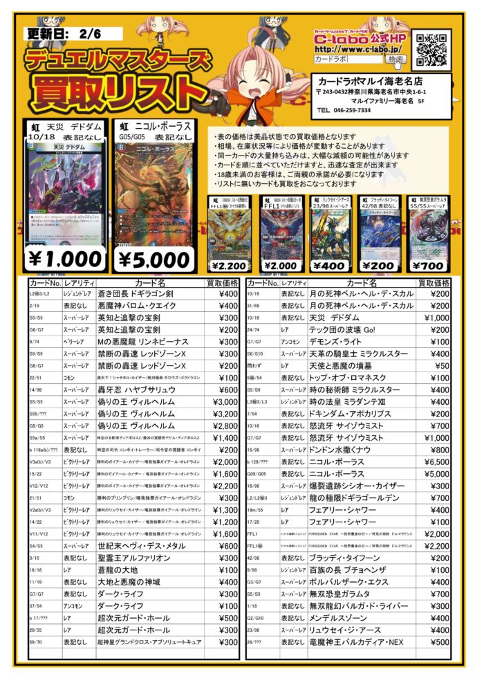 最後にゼロ文明!面子はあまり変わってないですがジョジョジョ・マキシマムやダテンクウェールがちょっと買取上がってます。