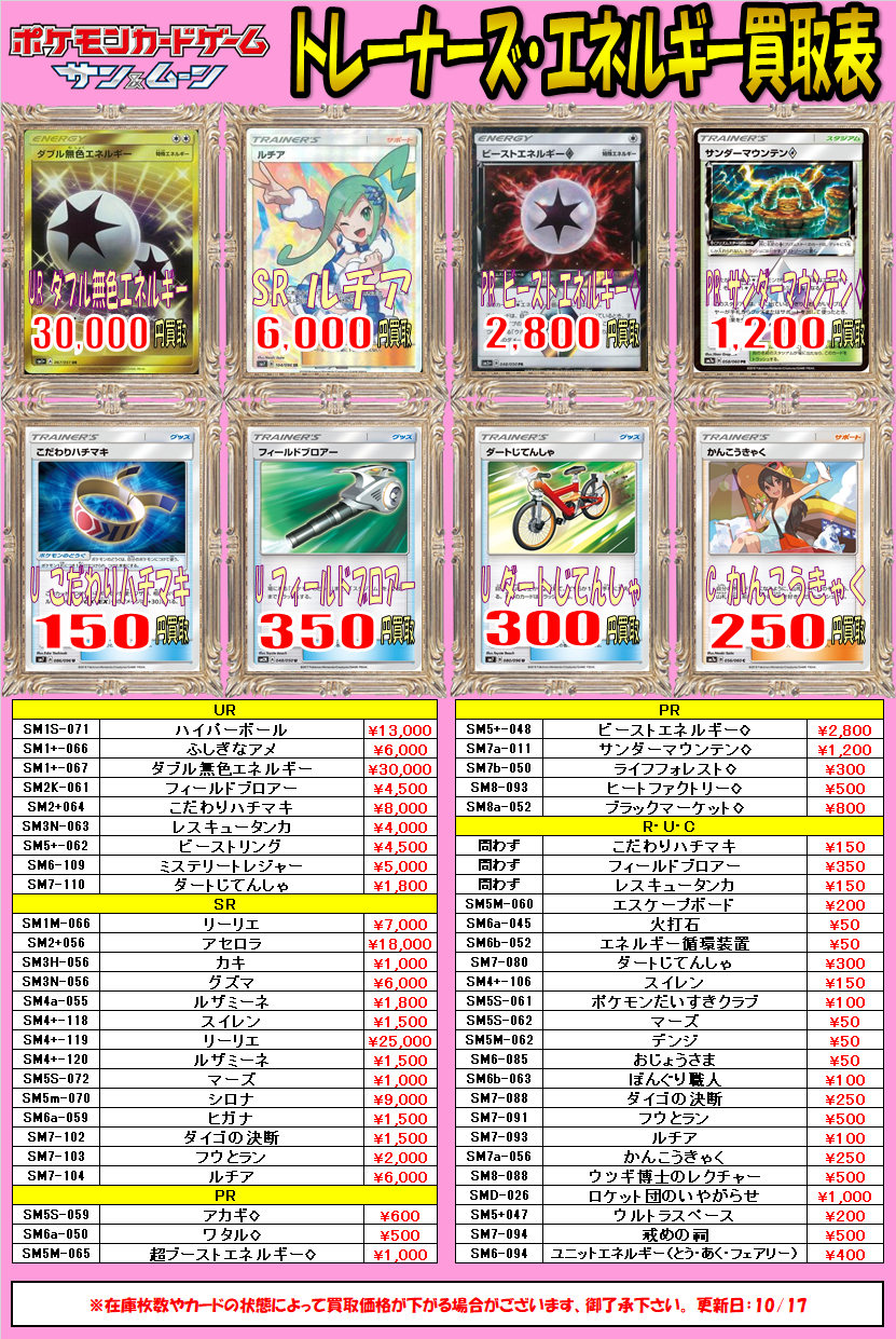 その他ですとカプ・コケコGXや鋼のジバコイル、ゼブライカなどが不足しておりますのでこの辺も是非買取にお持ち下さい!