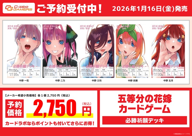 予約商品はそれぞれ予約数上限に達し次第受付を終了いたしますのでご了承ください。