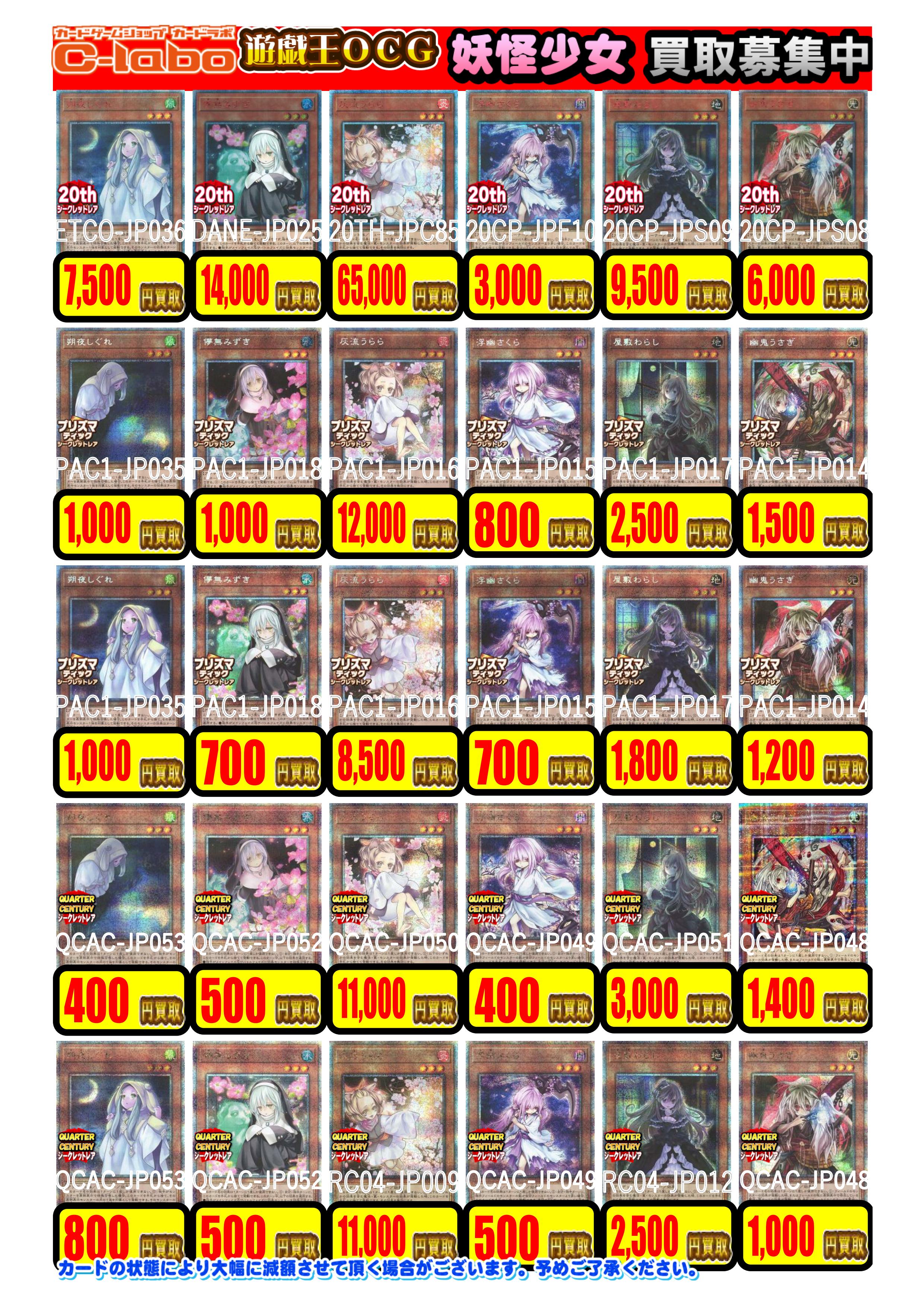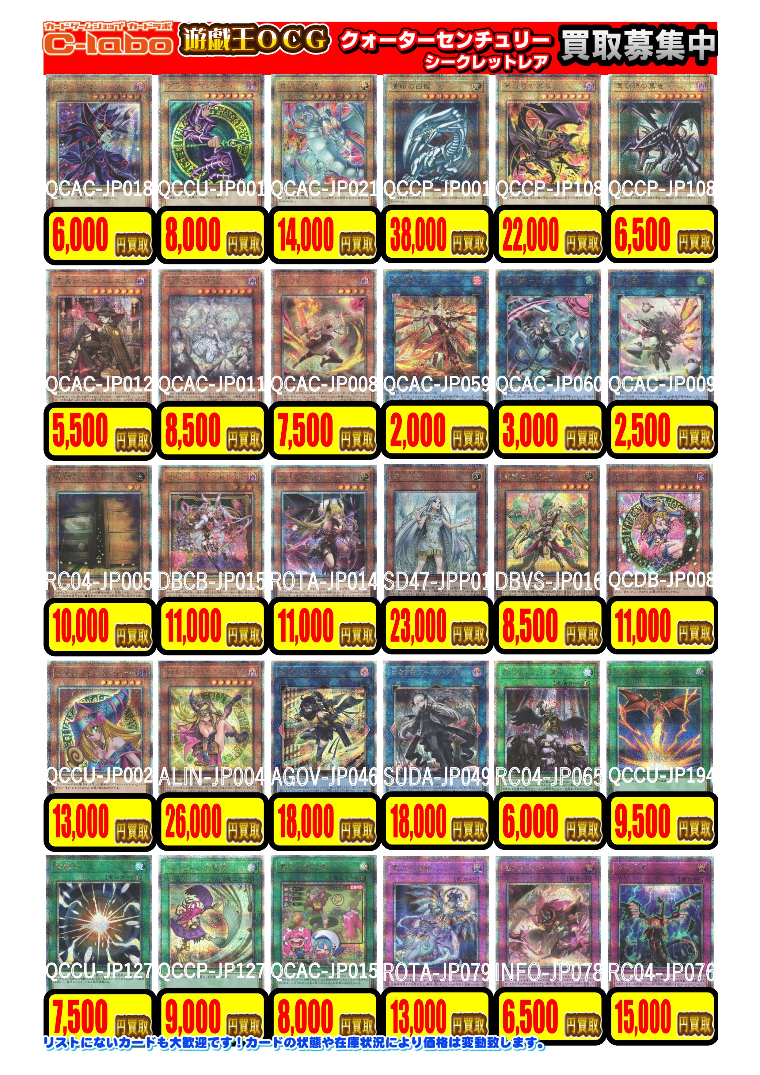 1/12更新【遊戯王OCG】買取情報