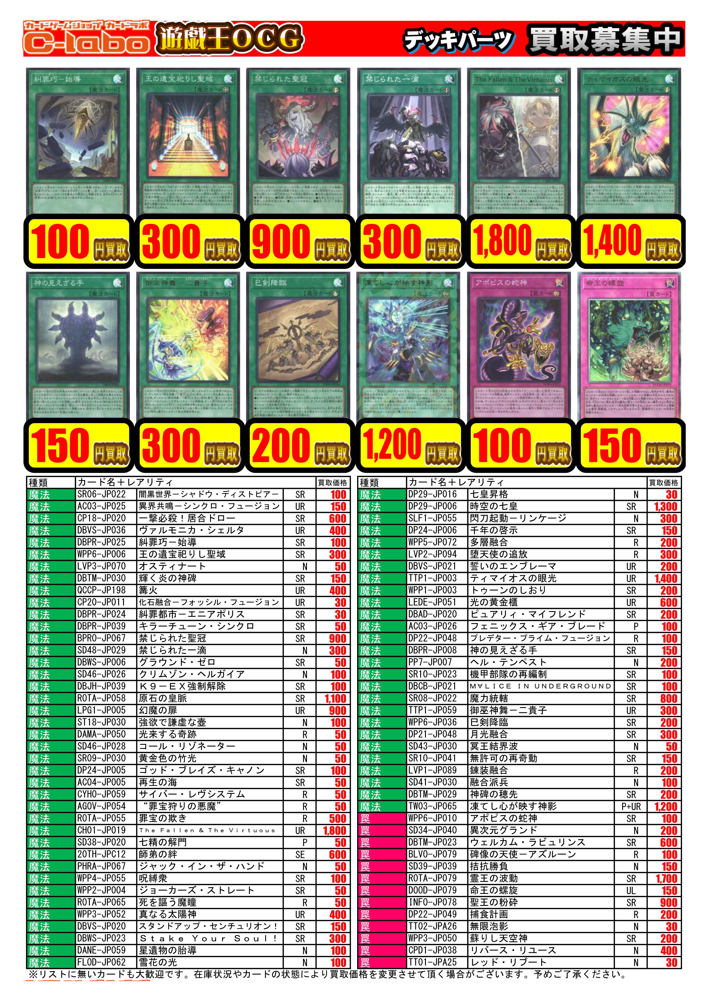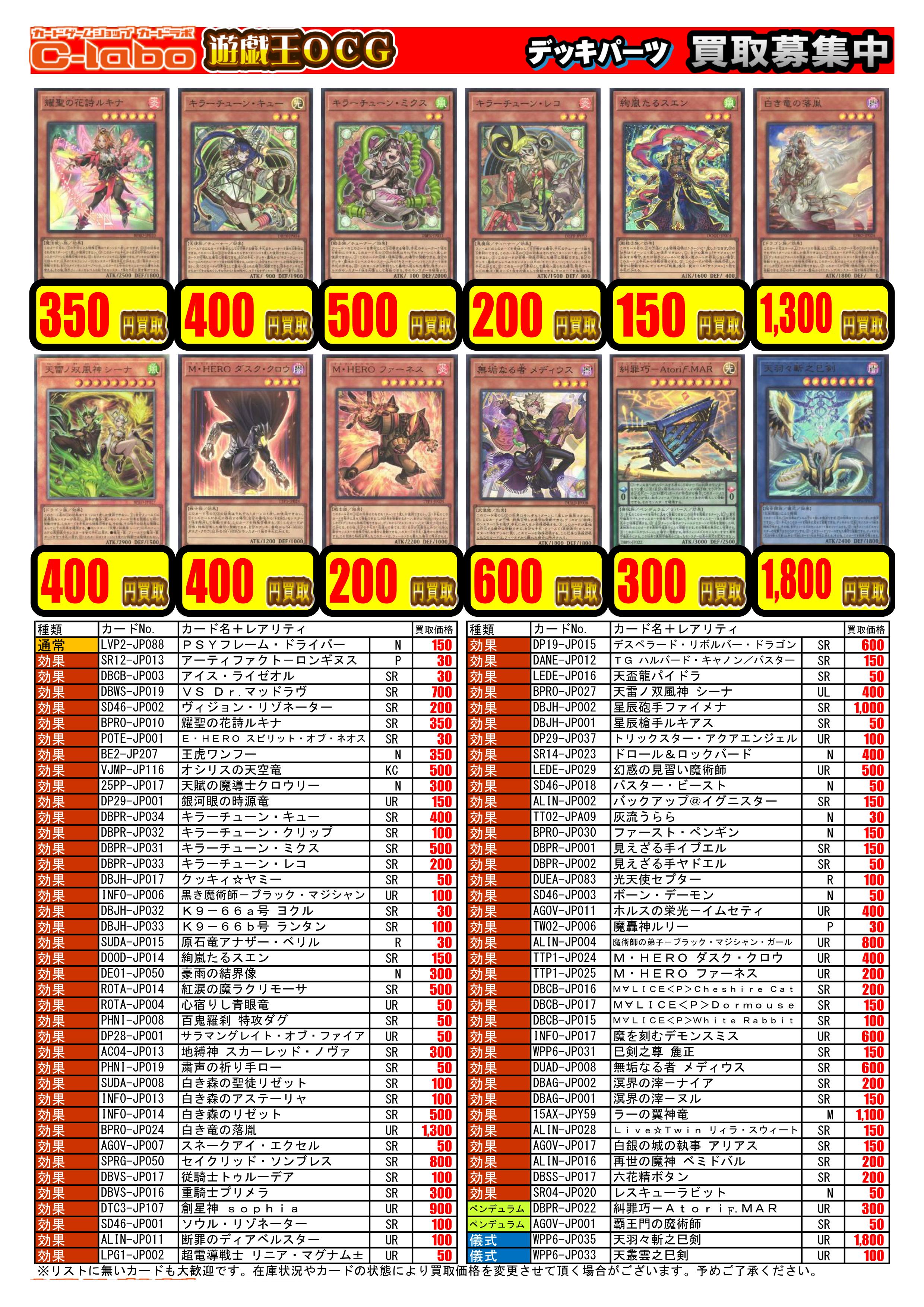 1/12更新【遊戯王OCG】買取情報