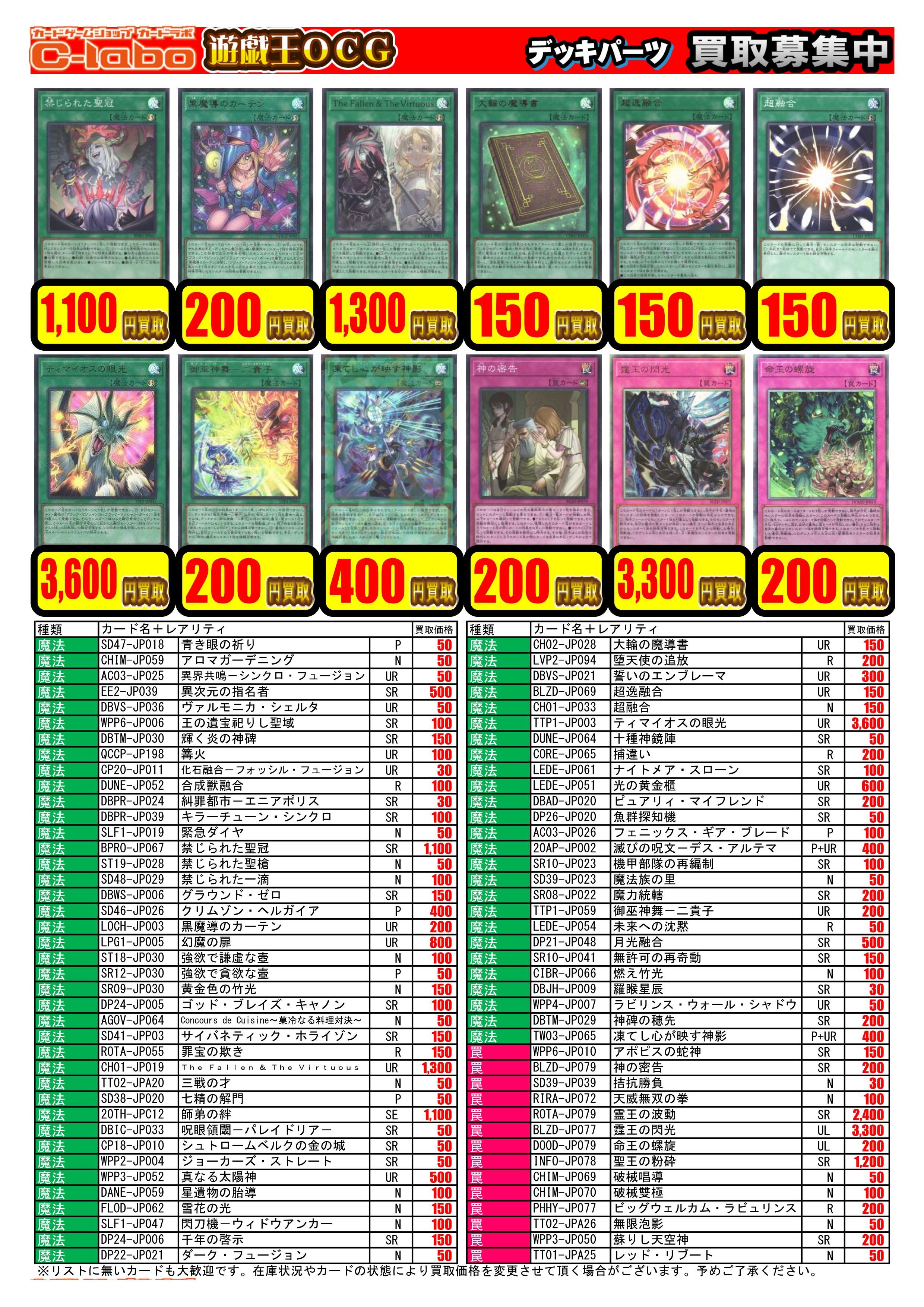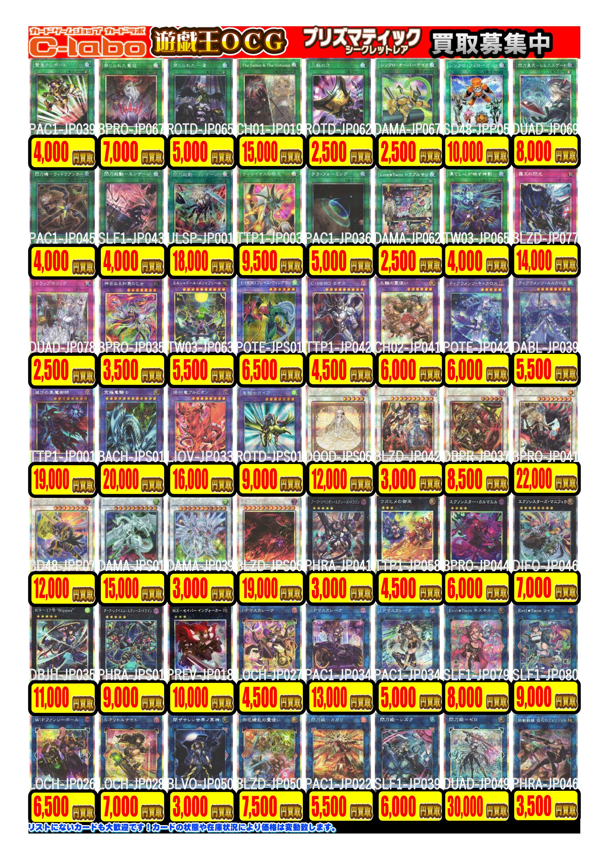 3/16更新【遊戯王OCG】買取情報
