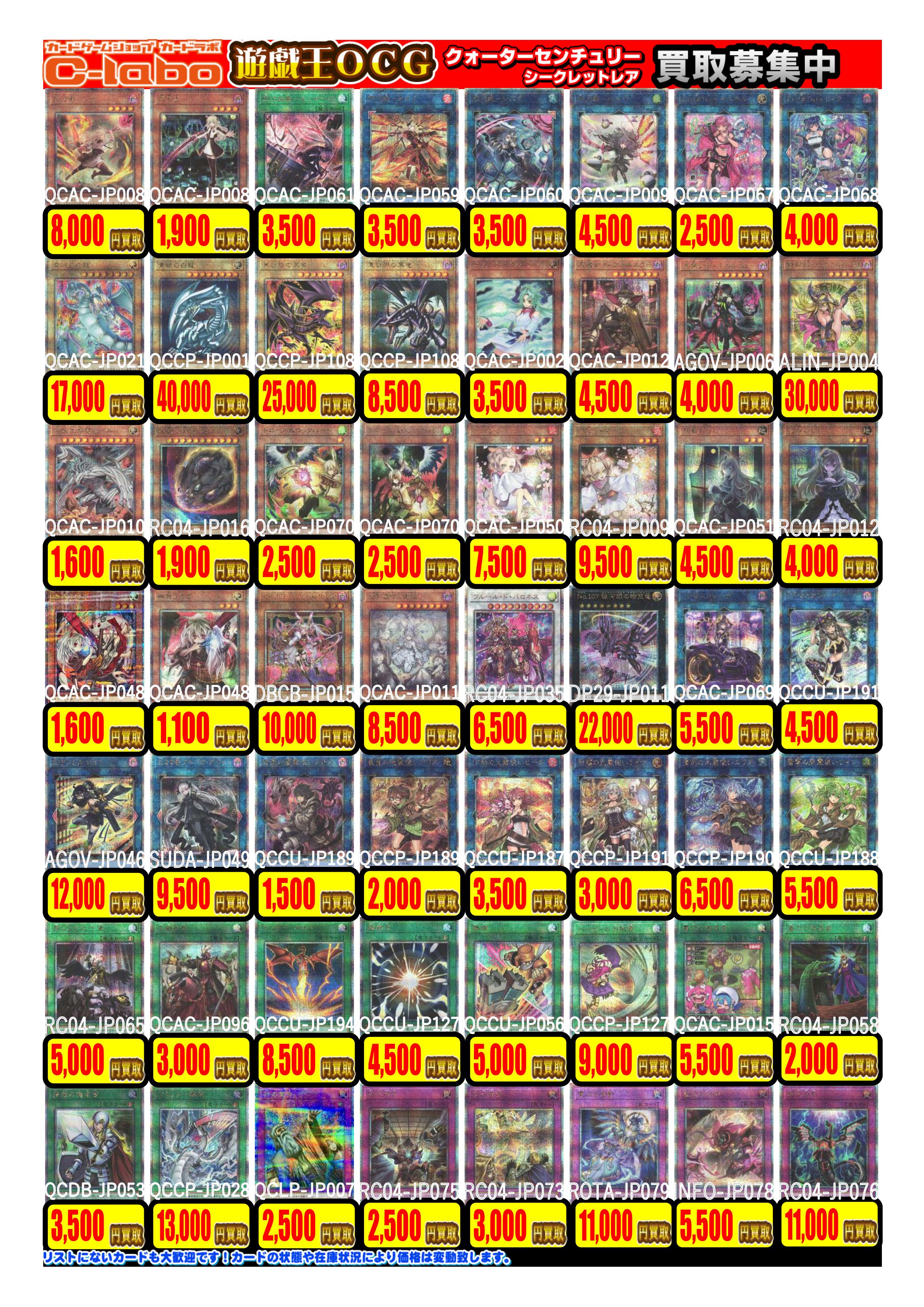 遊戯王OCGの現在のお買取情報です‼