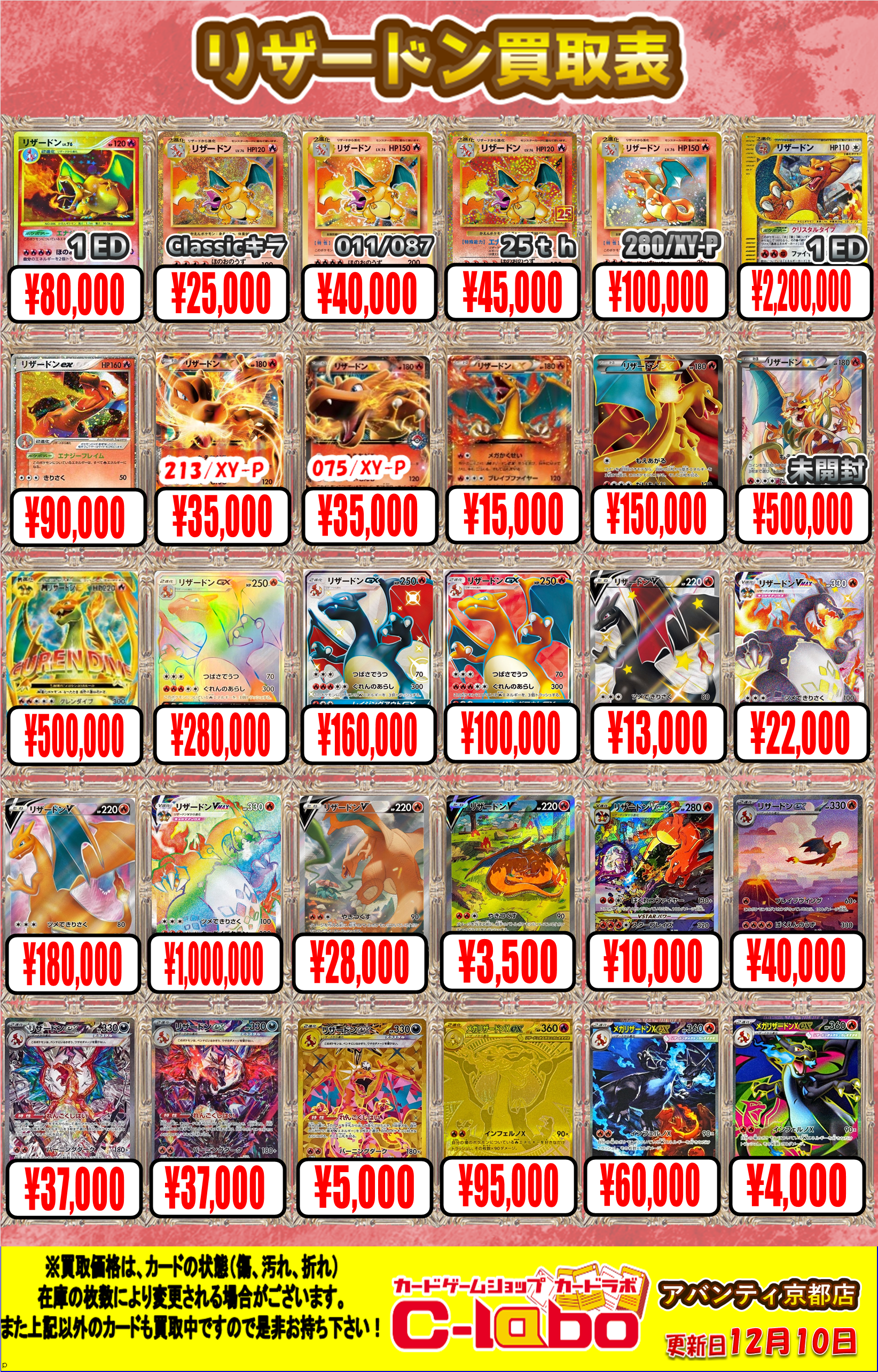 【ポケモンカードゲーム】高額買取表一覧【12月10日更新】