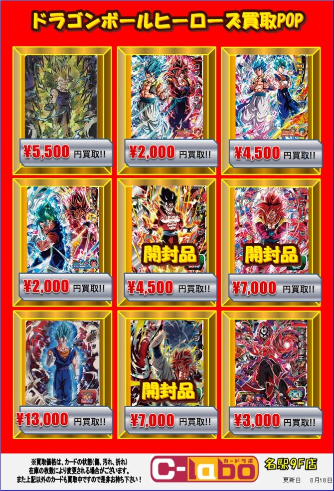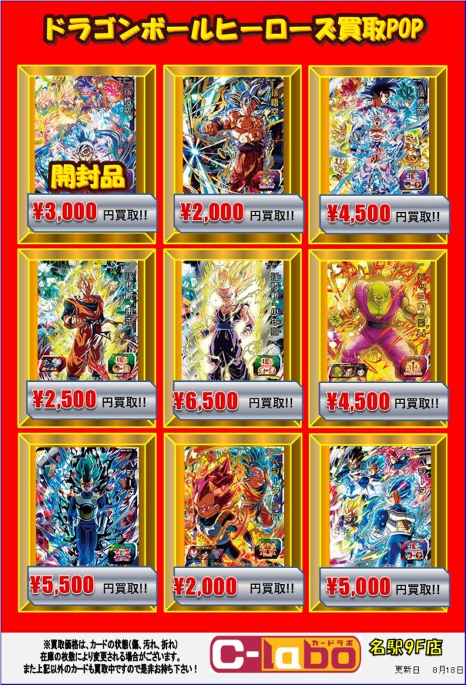 今回はドラゴンボールヒーローズ(以下DBH)の買取POPをご案内していきます。