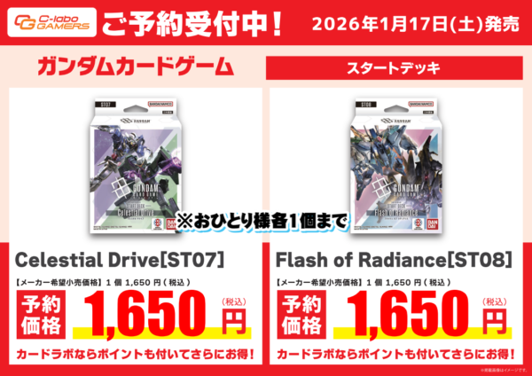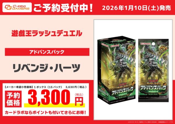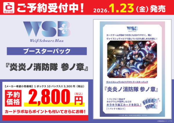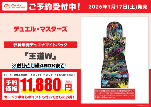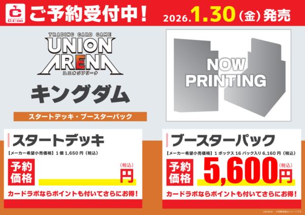※ご予約の商品ブースターパック1BOXごとに1000円、デッキ1個ごとに500円を前金として頂戴しています。こちらの前金は現金のみとなります。