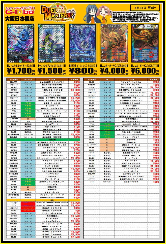 【デュエマ】全体買取表更新しました!!!【買取情報】