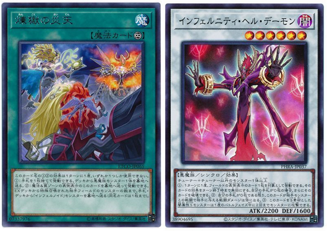 また、「煉獄の災天」は永続魔法故にフィールドに残ってしまうので、発動すると伏せられる罠が1枚減ってしまうのが難点でしたが、「インフェルニティ・ヘル・デーモン」がそれを解決してくれます!!