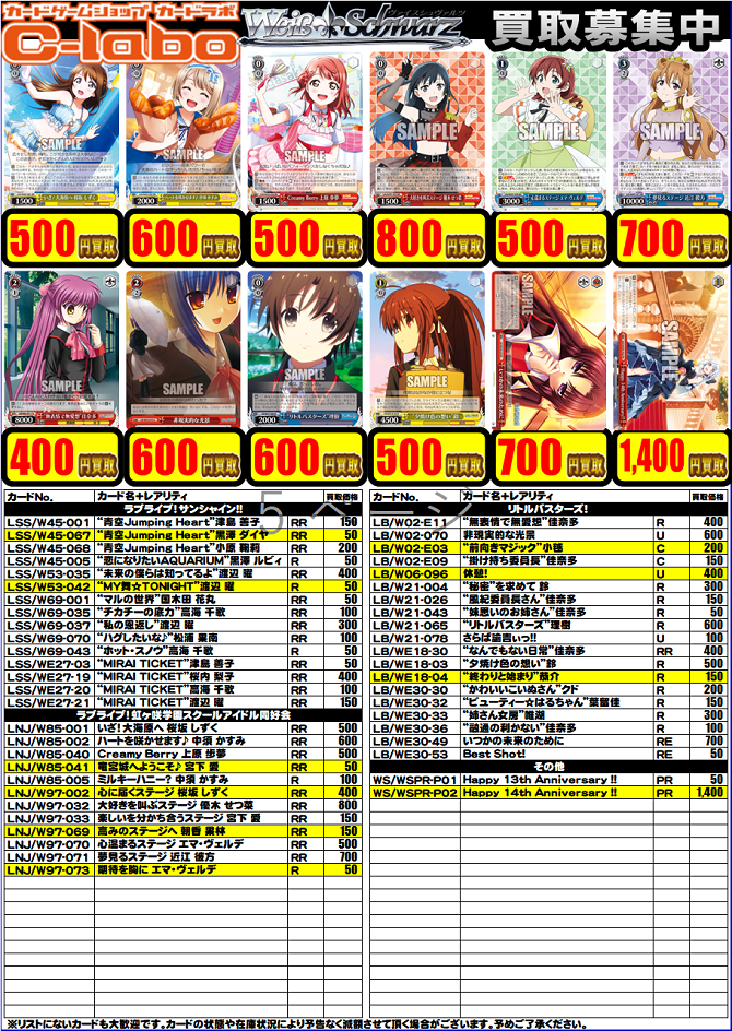 【買取募集中】ヴァイスシュヴァルツ 9/29更新