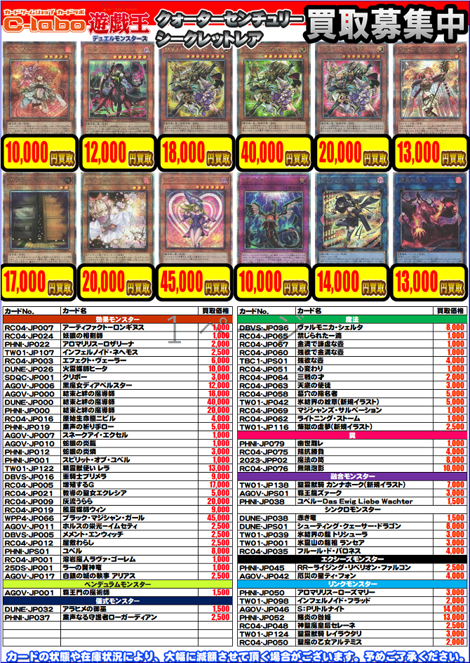 【買取募集中】遊戯王 高レアリティ買取情報 1/8更新