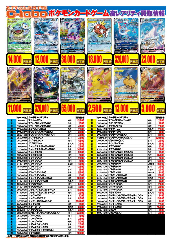 【買取募集中】ポケモンカード SM以降高レアリティ買取情報 7/26更新