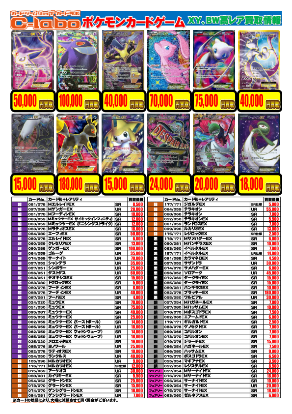 【買取募集中】ポケモンカード XY・BW高レアリティ買取情報 9/12更新