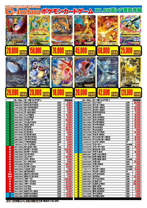 【買取募集中】ポケモンカード XY・BW高レアリティ買取情報 9/18更新
