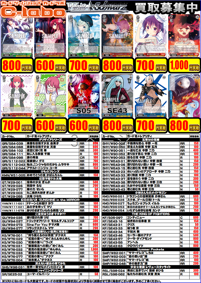 【買取募集中】ヴァイスシュヴァルツ 買取情報 10/21更新