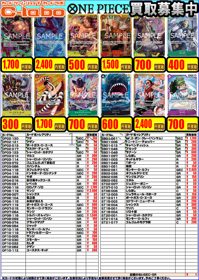 2025.12.24(水)19:00 公認 ONE PIECEカードゲーム 【ONE PIECEカードゲーム】スタンダードバトル 札幌店 8名 スイスドロー 無料 TCG+での事前抽選です(枠に空きがある場合は当日参加出来ます)