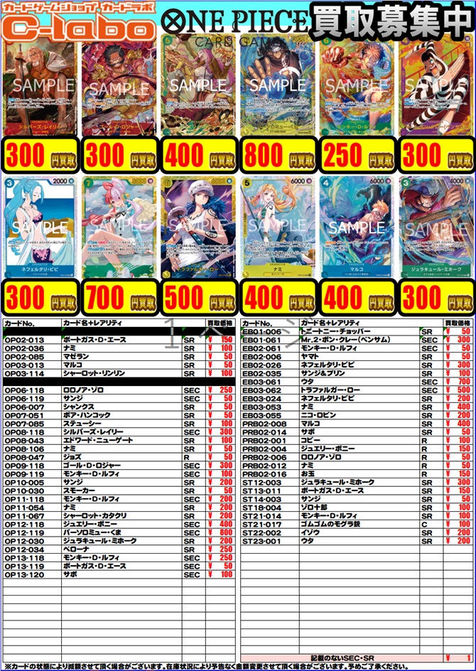 2025.11.19(水)19:00 公認 ONE PIECEカードゲーム 【ONE PIECEカードゲーム】スタンダードバトル 札幌店 8名 スイスドロー 無料 TCG+での事前抽選です(枠に空きがある場合は当日参加出来ます)