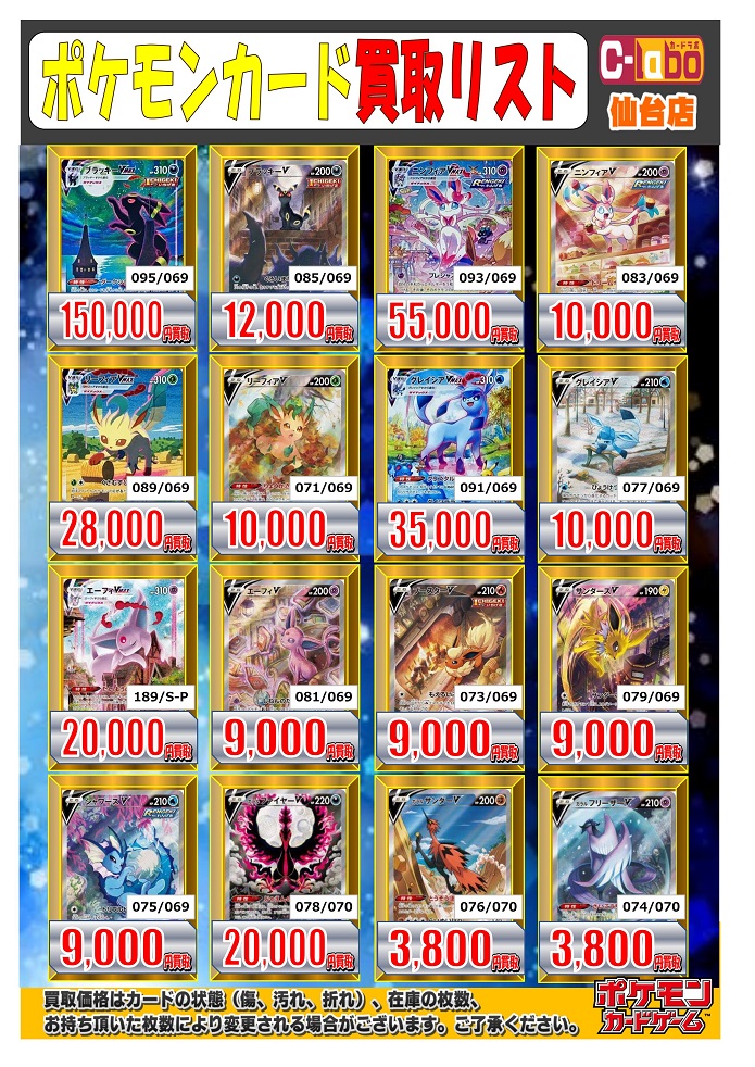 ポケモンカードの買取表を更新致しましたので、コチラに掲載させていただきます!
