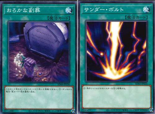 「おろかな副葬」と「サンダー・ボルト」が新たに準制限カードに指定されています。