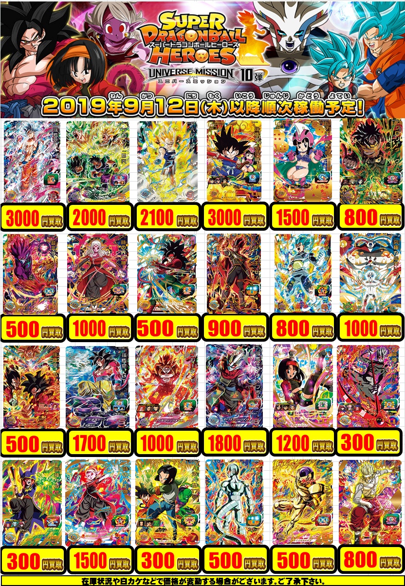 10月10日更新【ドラゴンボールヒーローズ】買取表