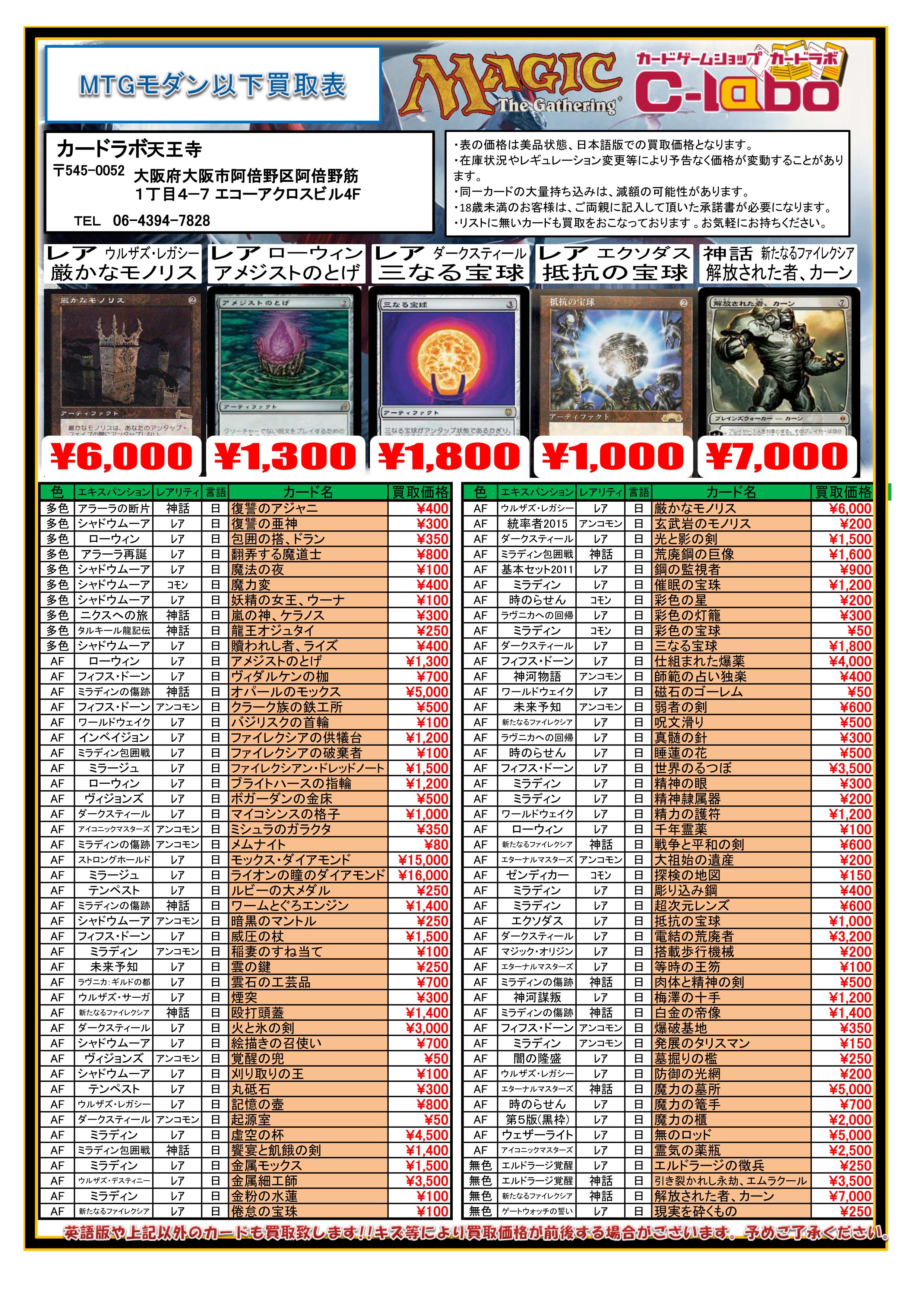 【5月19日】{MTG買取表更新}【スタン。モダン。れがしー】