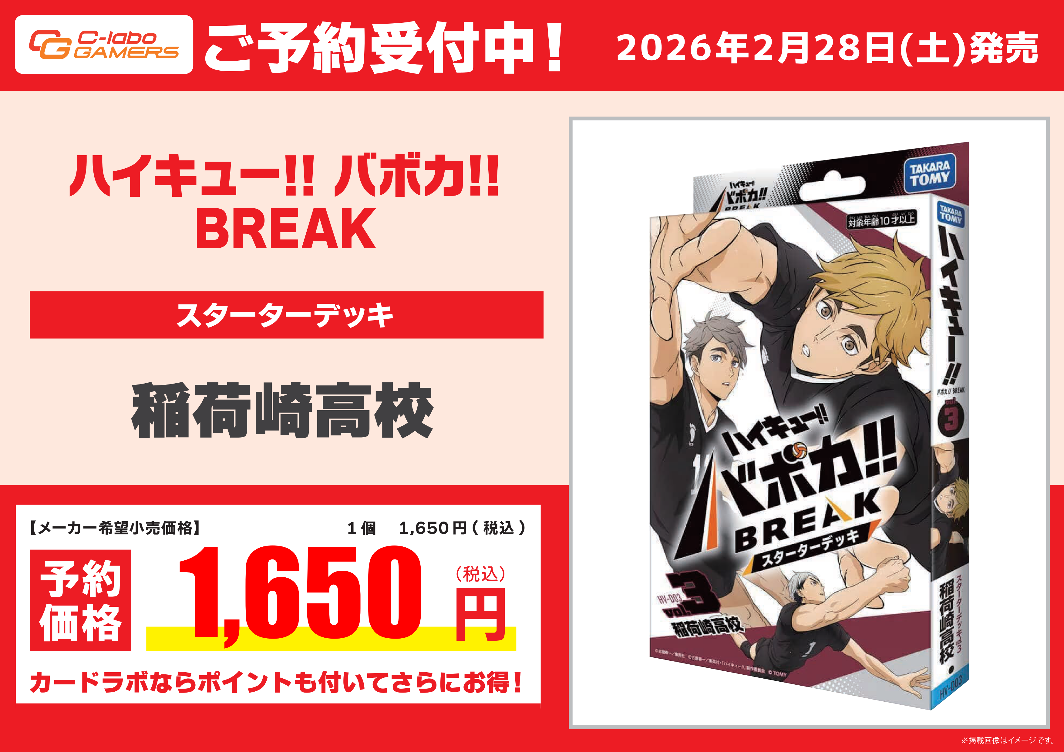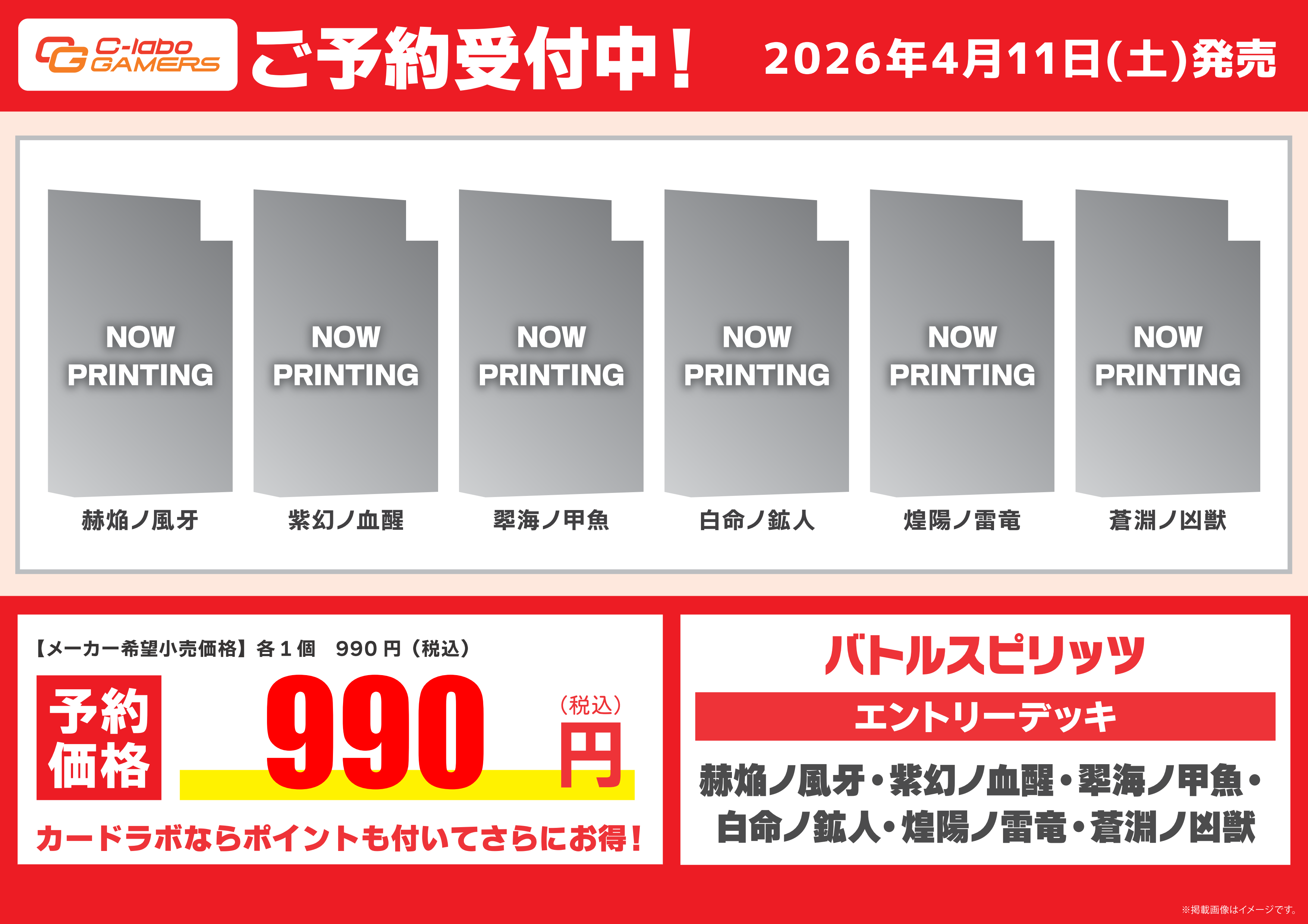 ・ご予約の商品1点毎に、デッキならひとつ500円、ブースターなら1BOX毎に1000円を前金として頂戴しています。こちらの前金は現金でのみのお支払いとなります。