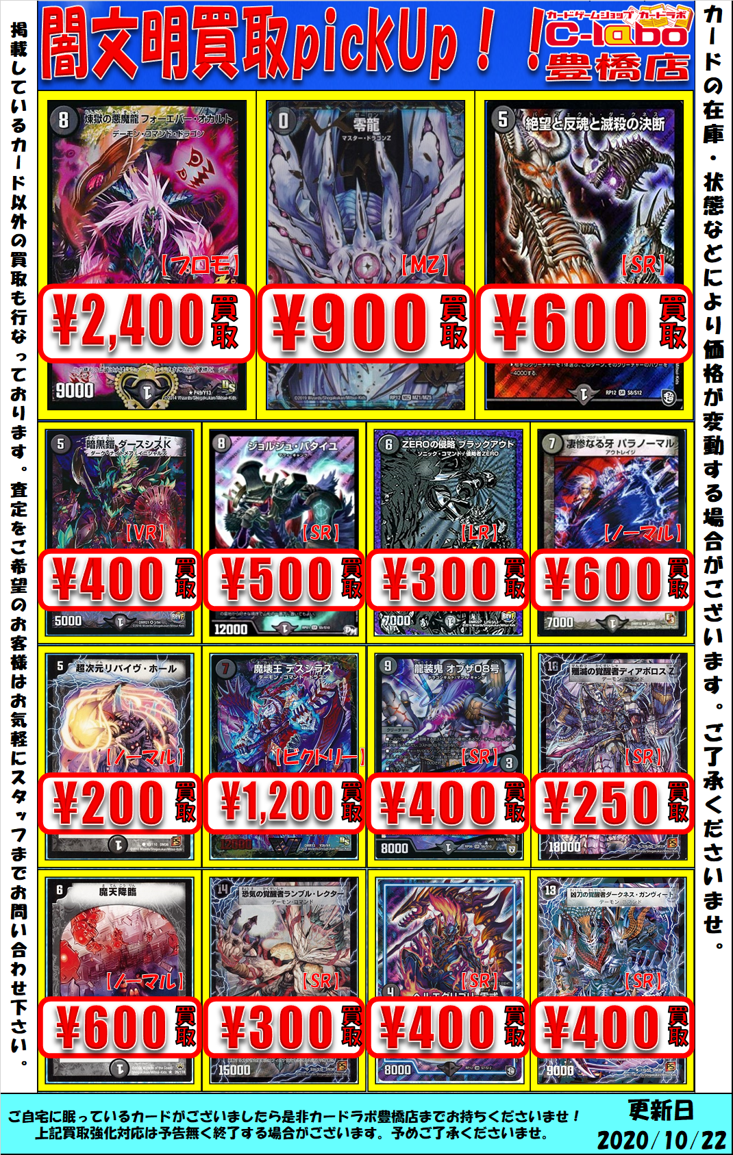 【デュエル・マスターズ】買取表を更新しました!ドシドシお待ちしてマス!