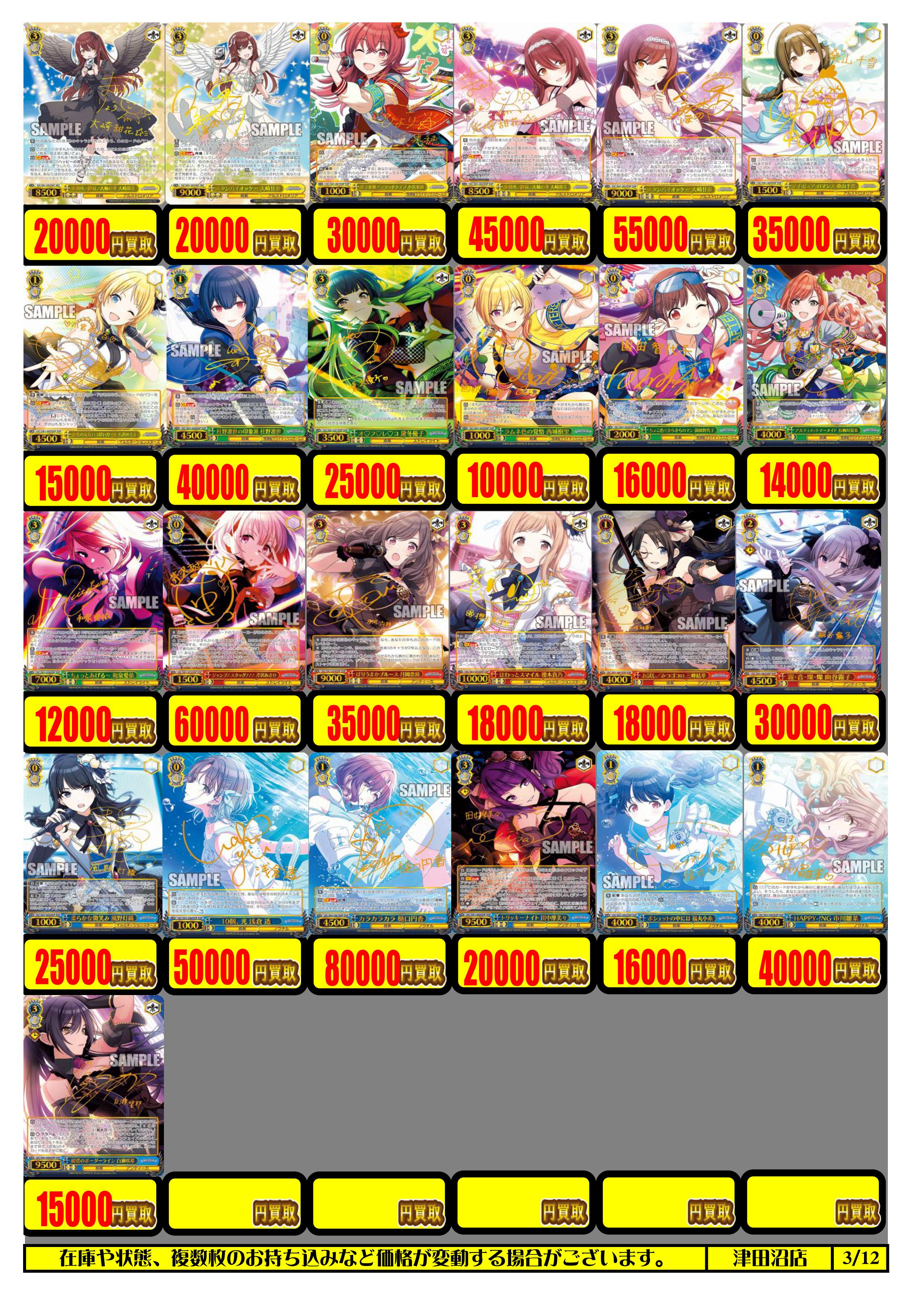 在庫数や相場、お持ち込み枚数などにより変更となる場合がございます。予めご了承下さい。