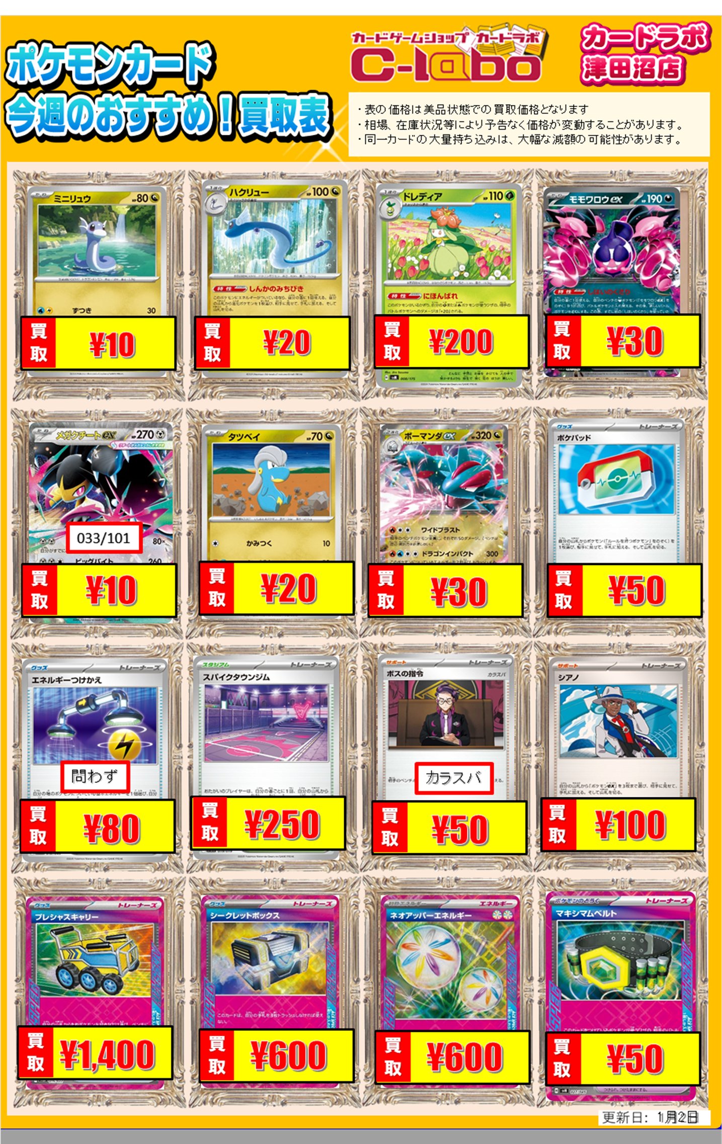 【買取情報】ポケモンカードゲーム 買取情報 カードラボ津田沼店 0102