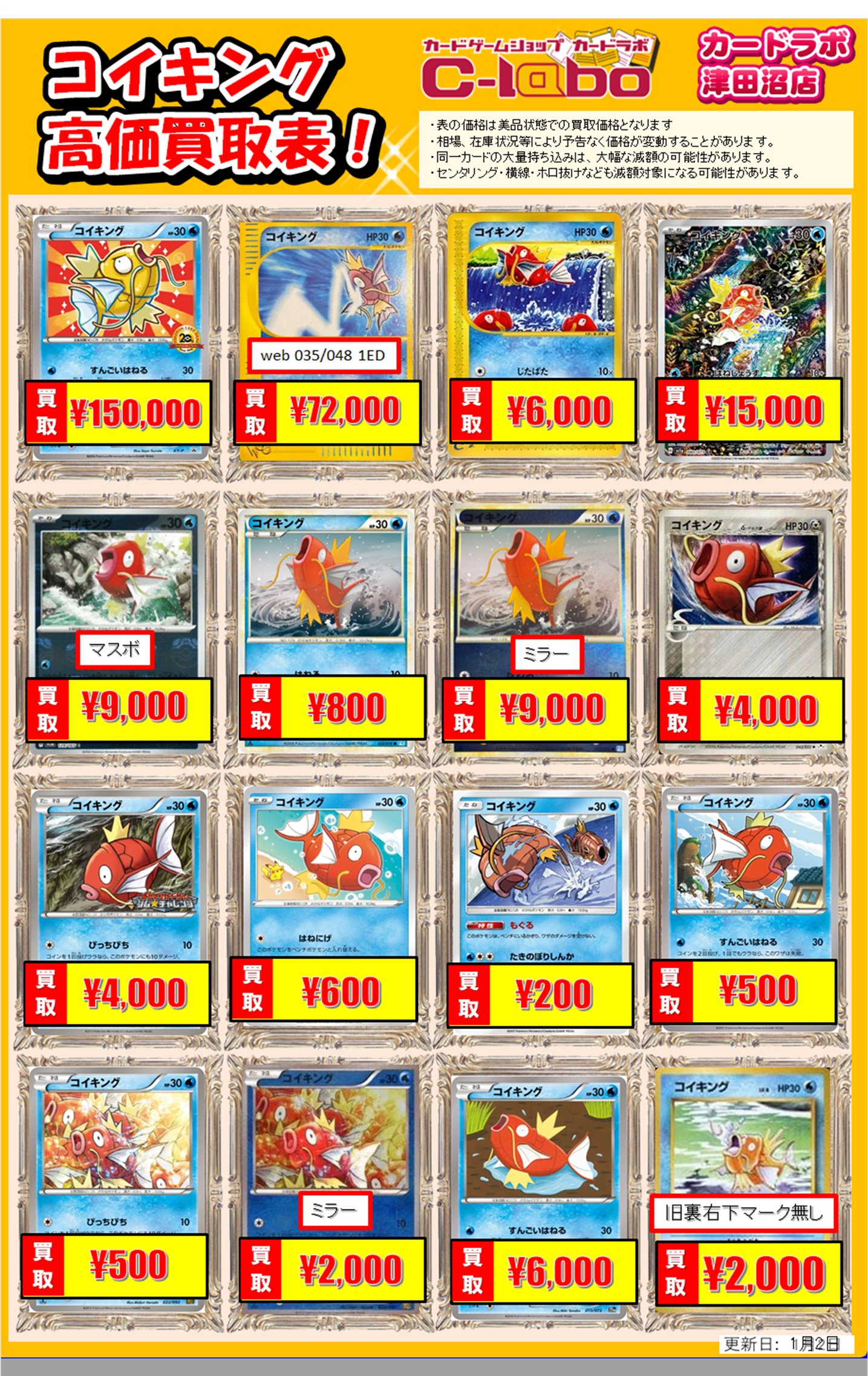 ポケモンカード買取表更新しました!