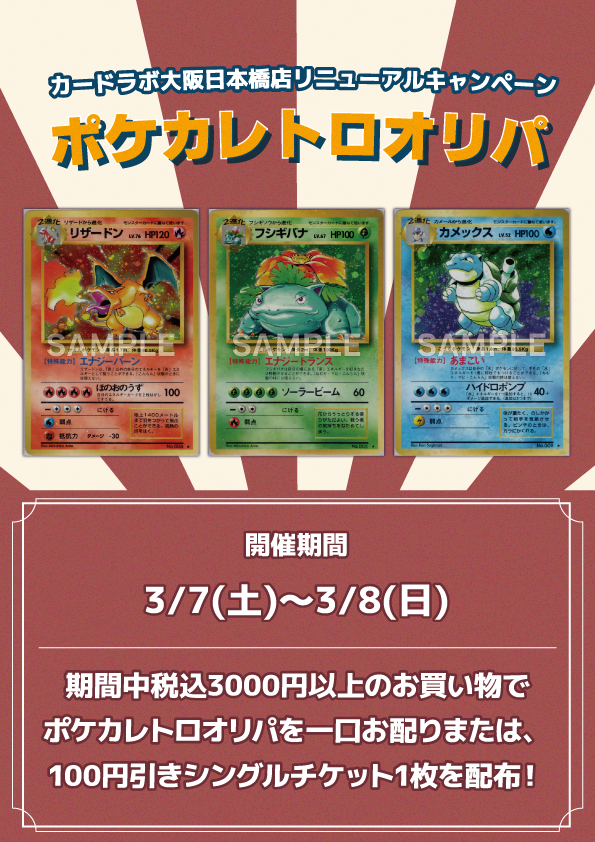 カードラボ大阪日本橋店リニューアル記念!ポケカレトロオリパプレゼントキャンペーン開催!